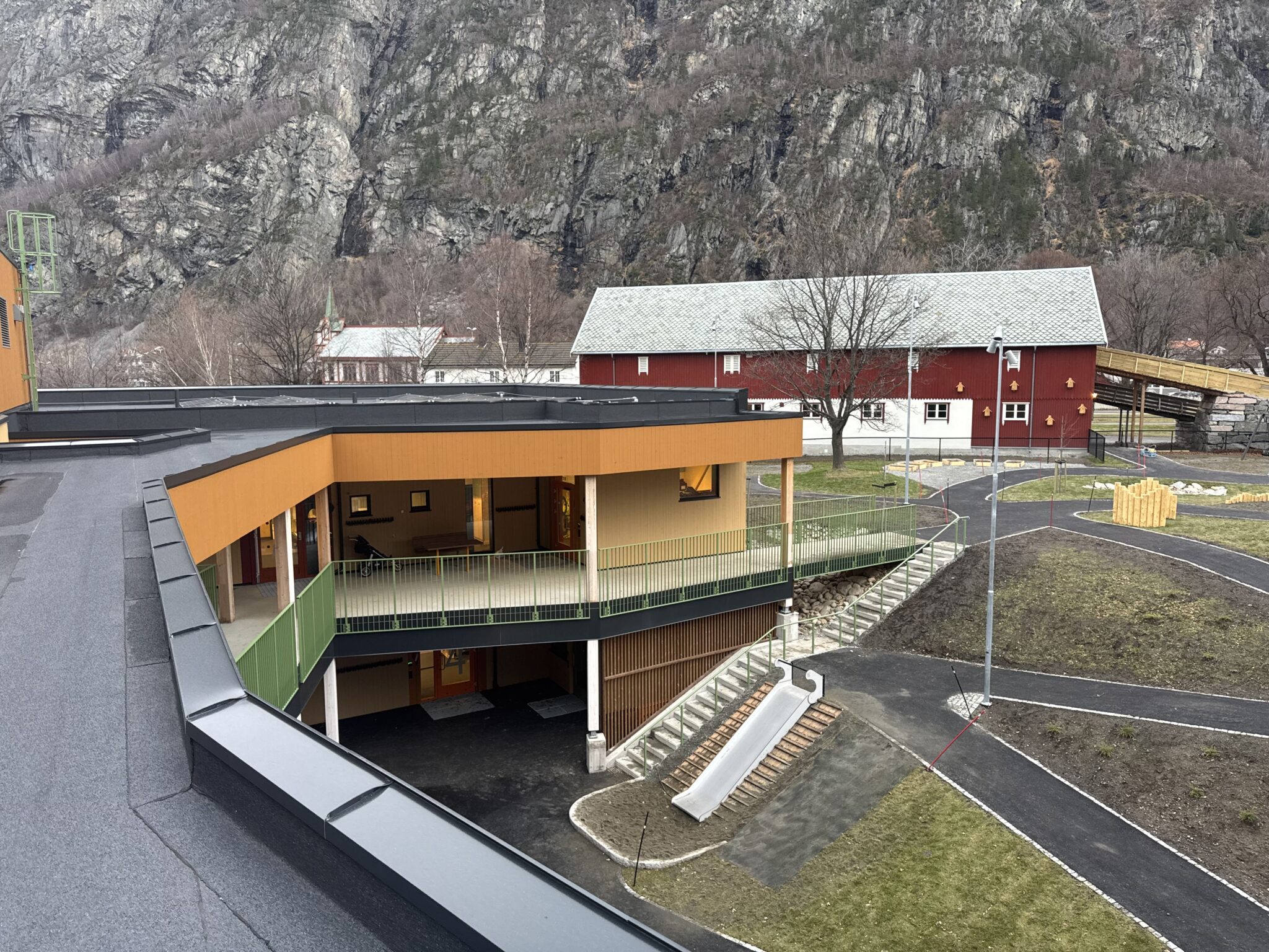 Barnehagen er det første fjerdegenerasjons svanemerket bygget i Norge. Det innebærer blant annet at det er strenge krav til lyd.